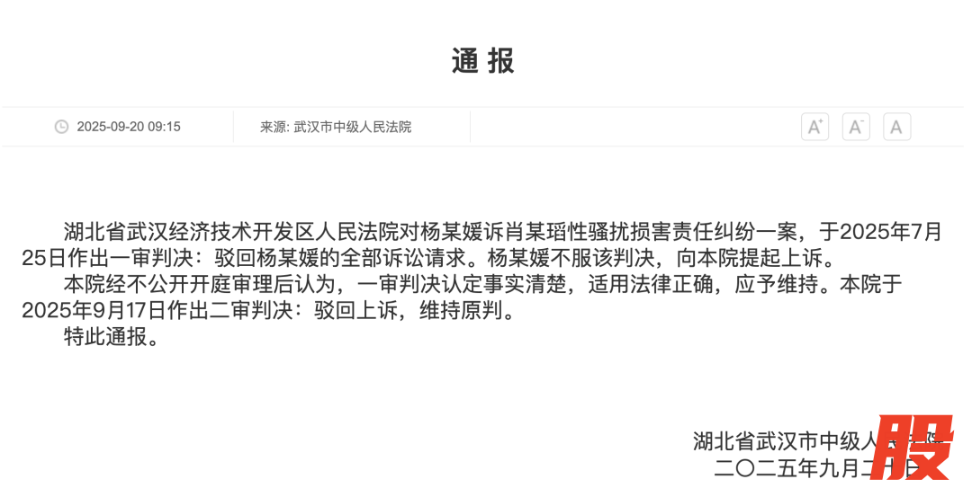 与此同时,9月20日上午,武汉市中级人民法院官网发布情况通报: